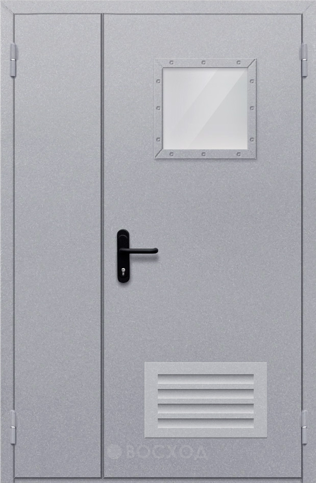 Неравнопольные двери ценят за их удобство, когда нужно сочетать широкое полотно для проноса габаритных предметов и узкое — для повседневного использования. В противопожарном исполнении такая конструкция становится еще более практичной. Неравнопольная противопожарная дверь с вентиляцией №25 изготовлена из холоднокатаной стали толщиной 1,5 мм, усиленной ребрами жесткости и противосъёмными блокираторами, поэтому сохраняет прочность даже при высоких температурах и механических нагрузках. Внутри заложена базальтовая плита, которая работает как теплоизоляция и надежный барьер для огня. Два контура уплотнения вместе с термоактивной лентой не пропускают холодный дым, а вентиляционные элементы позволяют поддерживать циркуляцию воздуха в штатном режиме. Отделка нитроэмалью устойчива к мелким царапинам, не тускнеет со временем и обеспечивает аккуратный внешний вид. Такая дверь объединяет функциональность, безопасность и продуманную эргономику.
